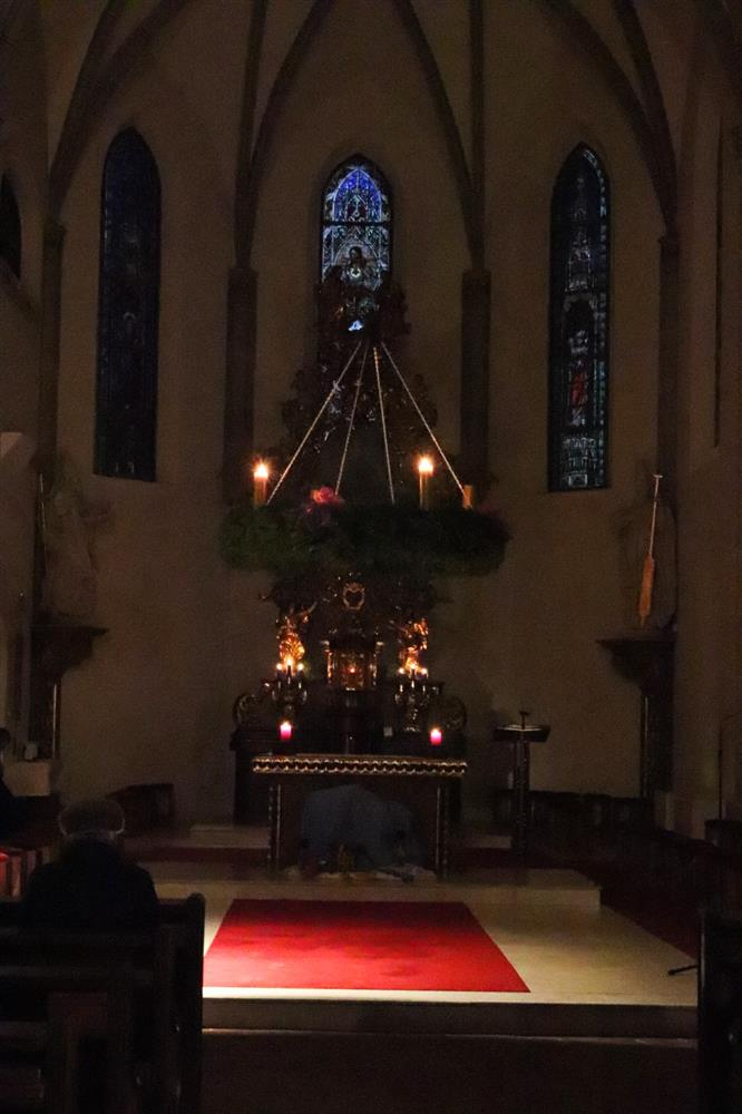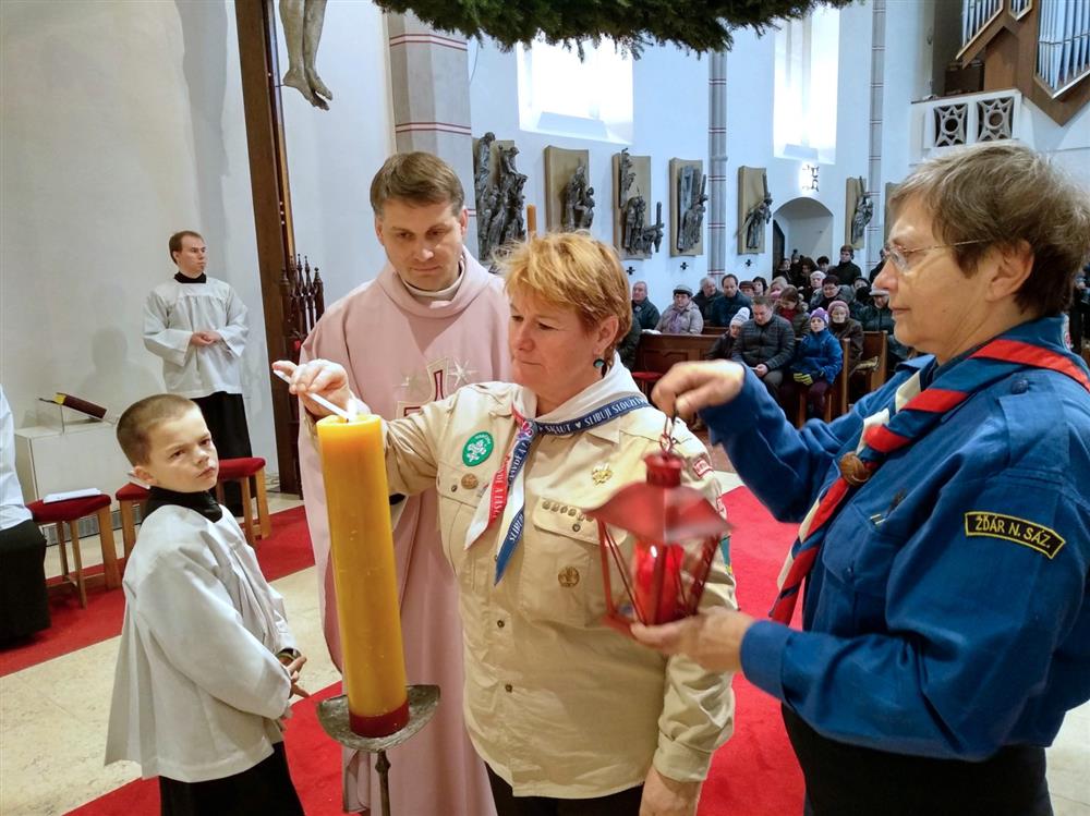 světelným průvodem. Třetí adventní neděli bylo skauty do kostela doneseno Betlémské světlo. Tuto adventní atmosféru tonoucí ve tmě - šeru, kdy čekáme na příchod opravdového světla - narození Spasitele, jsem se pokusil zachytit na několika fotografiích.