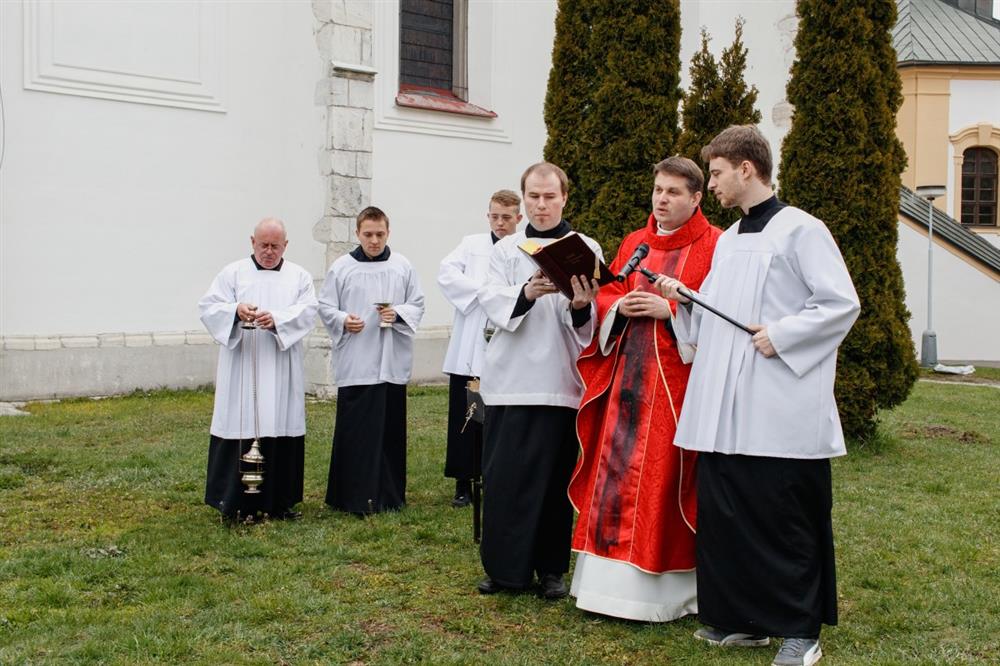 a v naší prokopské farnosti byly dnešní oslavy příjezdu Páně do Jeruzaléma zahájeny průvodem s palmovými ratolestmi. Zahájení mše sv. a obřad svěcení ratolestí byl na prostranství před kostelem. Průvod s věřícími se po té odebral do kostela, kde dále pokračovala liturgie Květné neděle zpívanými pašijemi a mší sv.