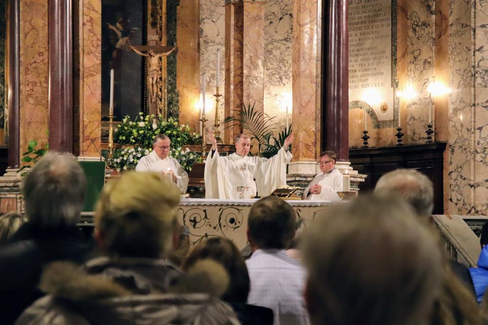 Česká mše sv. v zaplněném kostele Santo Spirito In Sassia - hlavní celebrant P. Pavel Dokládal