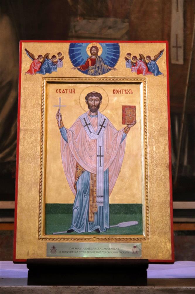 Ikona sv. Vojtěcha v bazilice sv. Bartoloměje na Tiberskén ostrově