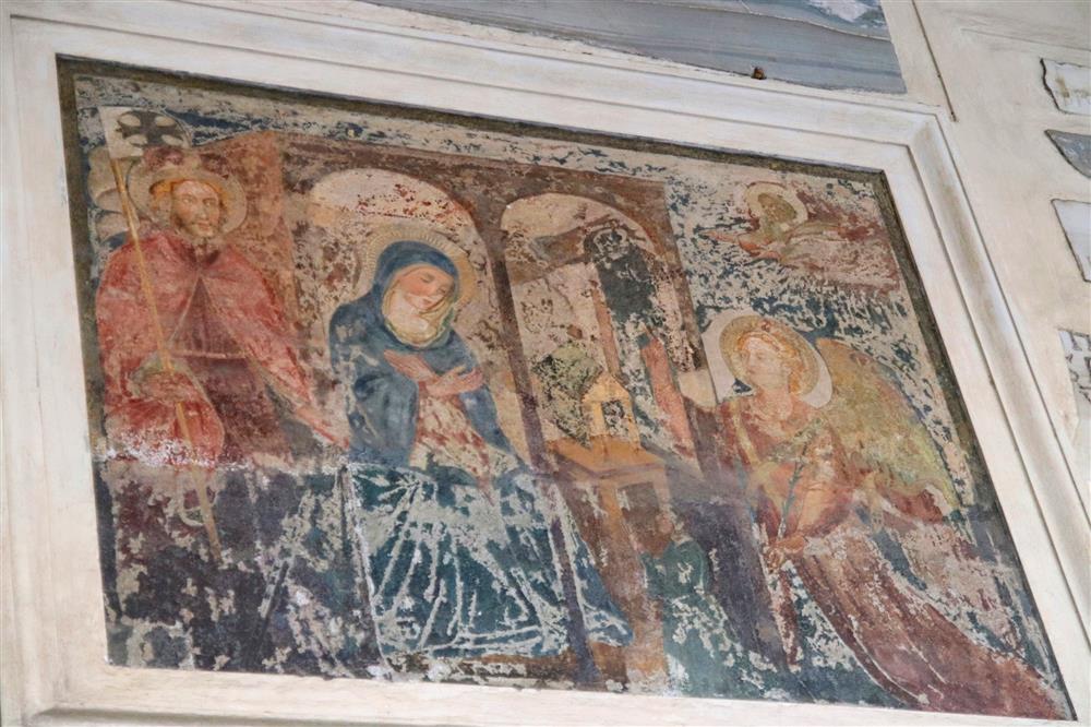 Starobylá freska Zvěstování Panny Marie se sv. Václavem na bazilice Santa Maria in Trastevere