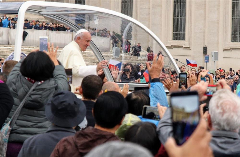 Svatý Otec František se zdraví s poutníky.