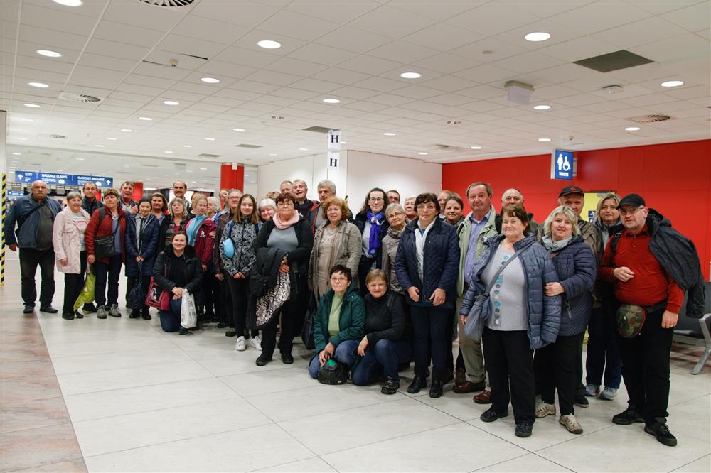 Závěrečné foto naší skupiny na letišti v Praze při čekání na zavazadla. Díky Pane za tuto krásnou pouť.