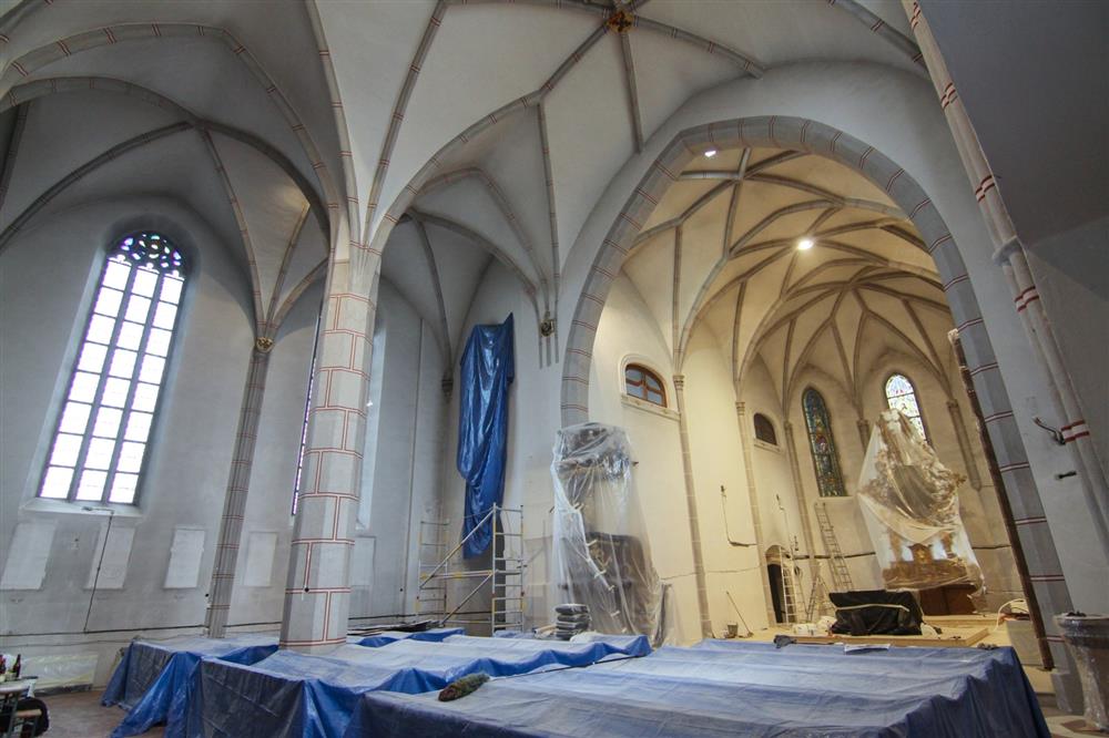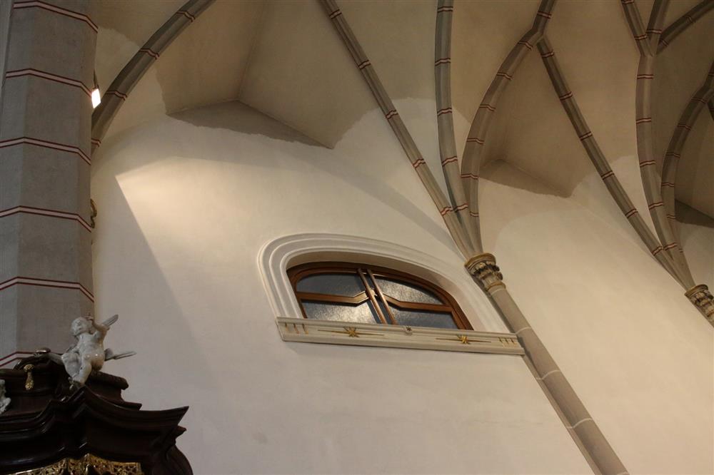 kostela sv. Prokopa. Jedná se o rekomstrukci elekroinstalace. Jak práce probíhají se můžete podívat zde. Fotografie budou postupně přibývat, tak jak budou práce postupovat. V tomto týdnu od 23. srpna již probíhá práce na zapravení kabeláže omítkou a vrchní omítky. V týdnu od 25. srpna již započala výmalba kostela. V současné době je vymalovaný prostor pod kůrem a začalo se s výmalbou presbytáře. Prohlédnout stav prací si můžete zde. Je dobře vidět rozdíl mezi starou a novou malbou.
