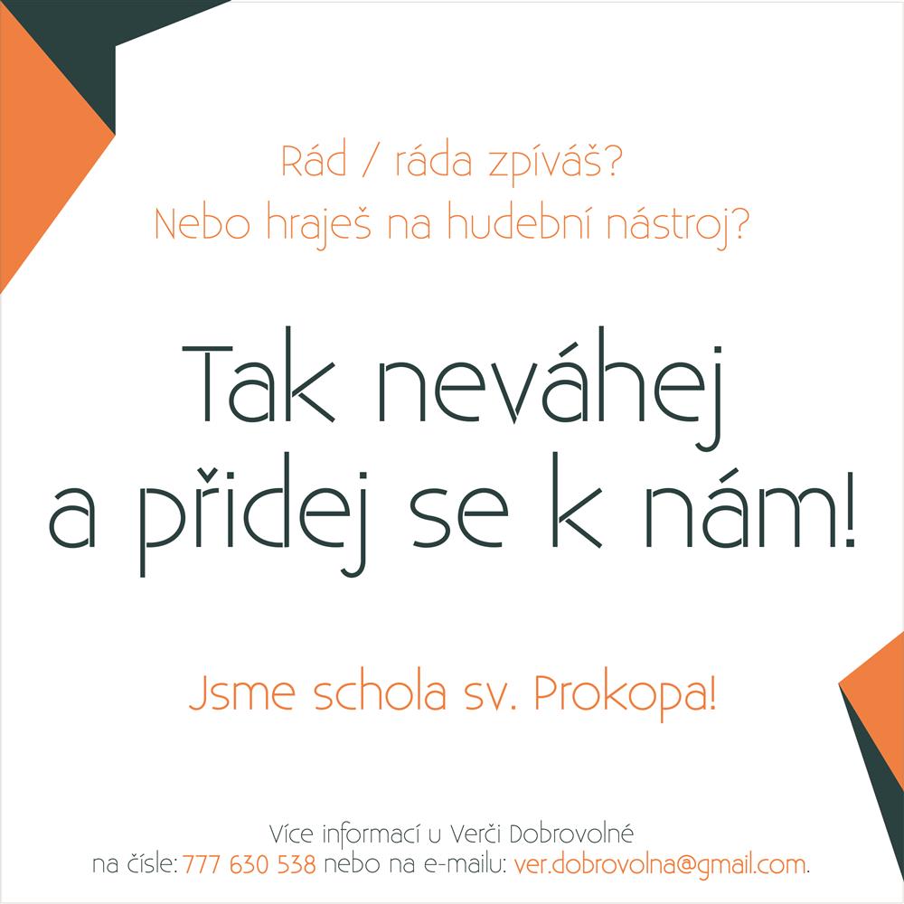 Rád/Ráda zpíváš? Nebo hraješ na hudební nástroj? Tak neváhej a přidej se k nám! Jsme schola od sv. Prokopa.