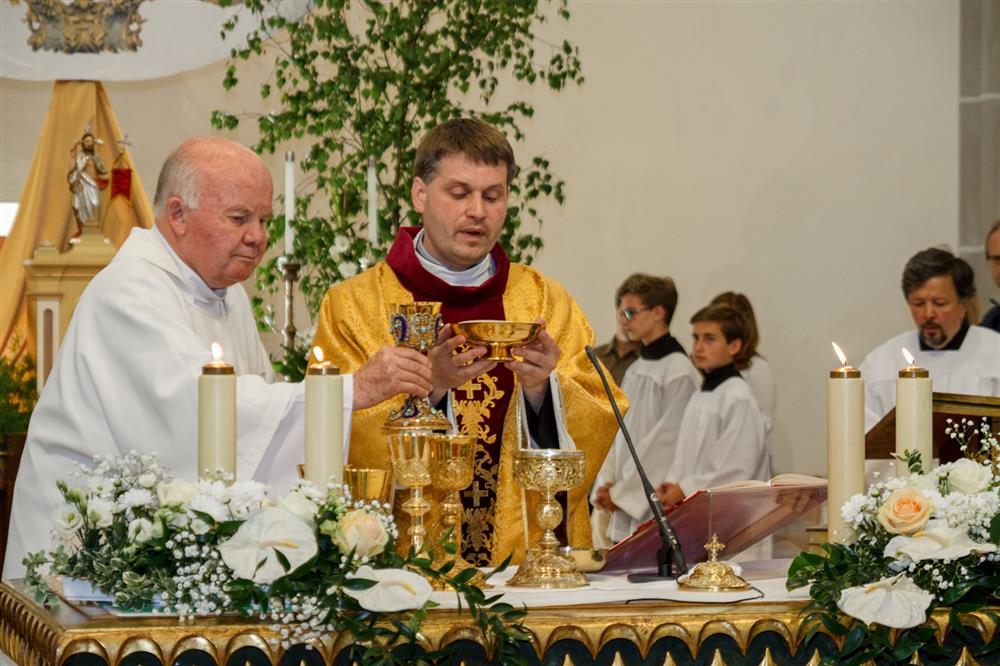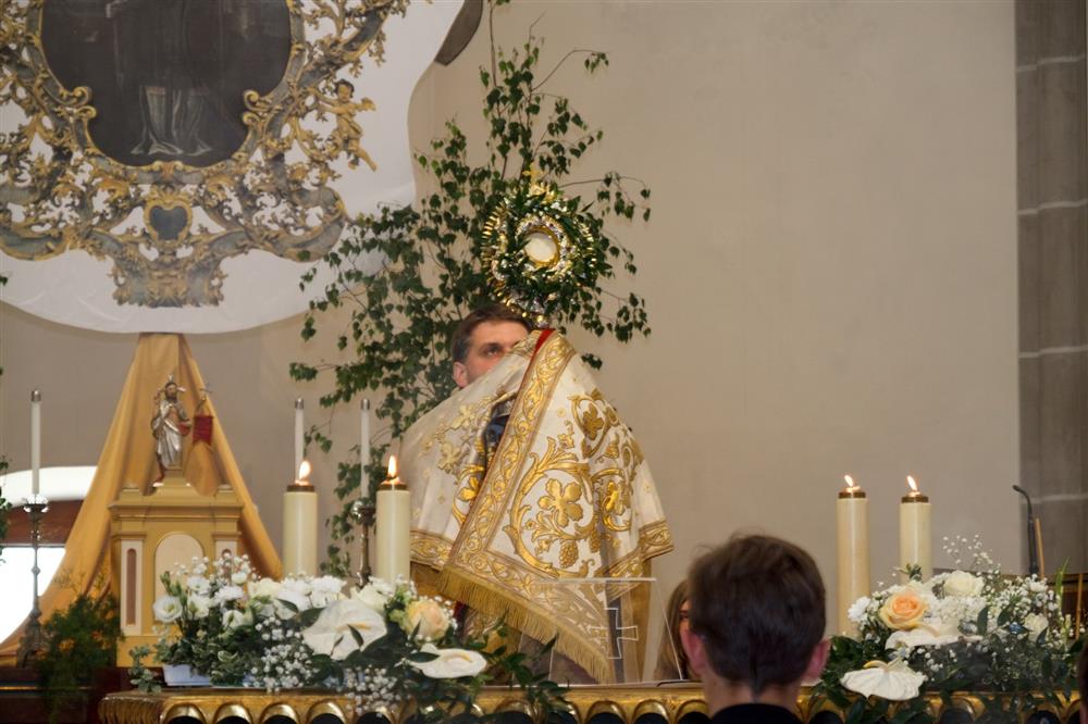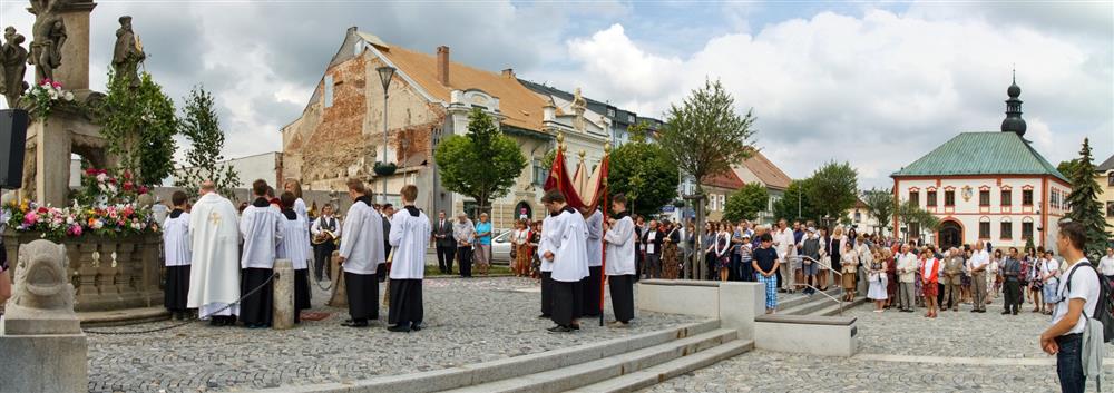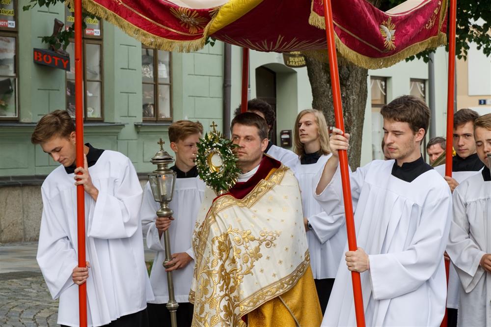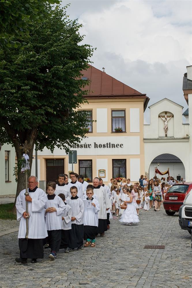 v naší farnosti. Slavnost byla přeložena ze čvrtka a začala slavnou mší sv. v 9 hodin v kostele sv. Prokopa. Následoval průvod s Nejsvětější Svátostí středem města. Zastavení bylo u morového sloupu Nejsvětější Trojice a další u kaple sv. Barbory. Závěrečné požehnání bylo opět v kostele sv. Pokopa.